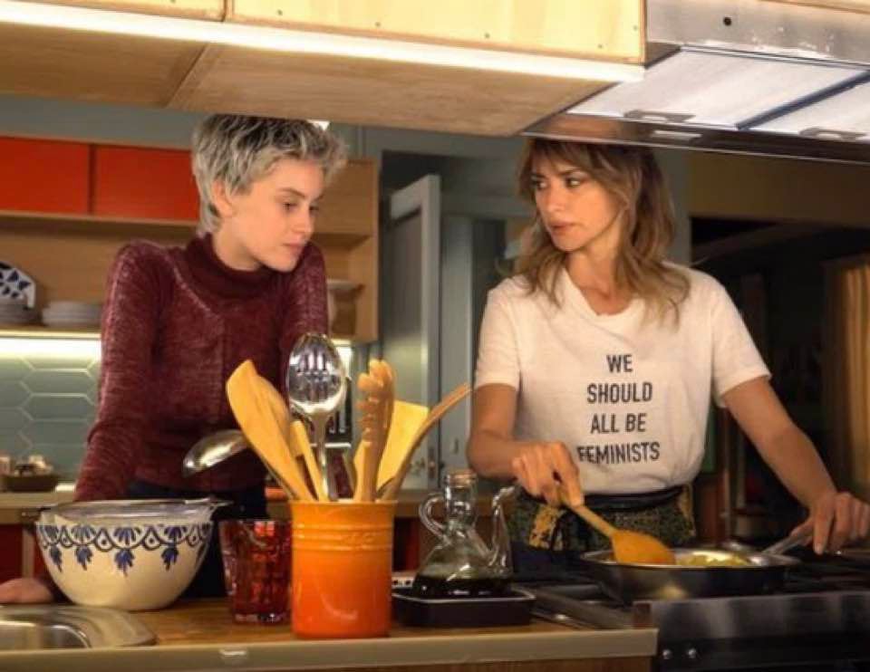 A despeito disso, fazendo o jantar para a sua companheira, Janis estampa em sua camiseta a frase: WE SHOULD ALL BE FEMINISTS. Sentença que se refere ao títula da conferência da escritora nigeriana e feminista Chimamanda Ngozi Adichie que em formato de vídeo já tinha atingido 7.378.938 visualizações no ano de 2013. Nesta cena e cenário é fato comprovado: Almodóvar está atento aos desafios do nosso tempo histórico. Que bom!