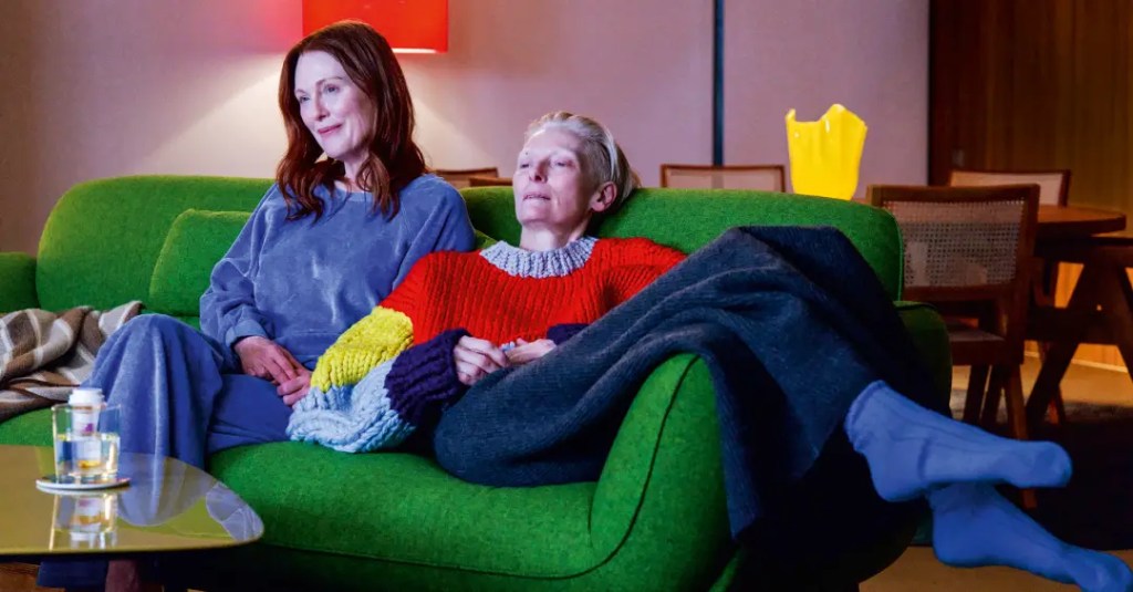 O recém lançado filme de Pedro Alamdóvar, O Quarto ao Lado (2024), dá a sensação de estarmos assistindo a um jogo de um mestre da sinuca, que mira numa bola e encaçapa várias. Cada escolha abre um leque infinito de discussões sobre amizade, coragem, morte, vida, amor, sexo, liberdade, encontros humanos, transformações de realidades, potência, limites sociais ou psiquicos. O filme traz em sua trama o reencontro de duas jornalistas que trabalharam juntas há décadas numa mesma revista. Reencontro que se dá no momento no qual Ingrid faz fama como escritora de livros de auto ficção, falando inclusive de sua relação com a morte, e Martha se encontra numa fase de fim das esperanças de cura de um câncer. Esta última, que fora correnspondente de guerra anos da vida, cobrindo os horrores da luta de cada um para não sucumbir em canários de destruição, agora decide que é hora de abandonar a luta contra o câncer que se espalha em seu corpo, e pede para que a amiga, recentemente resgatada, a acompanhe no desfecho escolhido para sua história. Não pede que assista a sua morte, mas, que aproveitem juntas os últimos dias e que na hora na qual decida ser a última da vida, que tenha alguém no quarto ao lado. Para dar vida a essa dupla de personagens que vai falar sobre a morte não como oposição à vida e sobre laços que tornam os dois extremos, entre os quais a vida acontece, repletos de sentido, Almadóvar escolheu atrizes que traziam na bagagem outros trabalhos que podem fazer pontes interessantes com o atual, enriquecendo tramas associativas, e aprofundando possíveis análises. Julianne Moore, que é Ingrid em “O quarto ao Lado”, em 2014 dava vida à Alice, em “Para Sempre Alice” (Glatzer e Westmoreland), professora de linguistica em Harvard que no auge da carreira precisa lidar com os efeitos do Alzheimer que aos poucos avança e a faz ir sentindo se perder de si mesma. Por sua vez, Tilda Swinton, que se hoje dá vida a um personagem que escolhe o momento de deixar a vida, em 1993 era “Orlando – A mulher imortal” de Sally Potter, baseado no livro de Virginia Woolf. O romance histórico publicado em 1928, e adaptado para o cinema no início da década de 90, fala de um personagem que vive 400 anos, condenado pela rainha a permanecer eternamente jovem (“não desapareça, não murche e não envelheça”, dizia ela), nesse tempo vai aprendendo a poetizar a vida “expressando coisas que alguns apenas sentem” : morte, amor, poesia, política, sociedade, sexo e nascimento num roteiro que nos faz acompanhar Orlando, nas oposições que uma vida comporta, sem envelhecer até que, finalmente depois de transicionar de gênero, pudesse não se sentir presa ao destino, não condenada, mas, liberta. Como não relacionar esses dois personagens, das tantas vidas encarnadas em Tilda Swinton nos mais de trinta anos que separam Orlando de Martha? Da mesma forma que dificil não juntar Alice de Ingrid, personagens que Julianne Moore deu vida? Difícil não pensar que se Alice fosse para sempre não viria Ingrid e que Orlando precisou ser muitos e muitas até a chegada de Martha. A vida acontecendo, as escolhas nos libertando ou nos condenando à repetição do sempre assim das coisas, os encontros e despedidas potencializando transformações dentro e fora de cada um e de cada tempo histórico e social. Sim, o batom vermelho, bem almadoveriano, cabe numa cena de morte e isso não é erotizar a morte, é erotizar a vida na qual cabe uma morte de figurino solar e com o lugar e a hora determinados pelo o dono daquela vida.